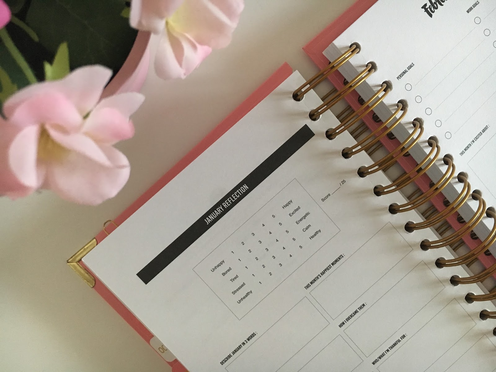 At the beginning of every month there is a page before the month starts that enables you to fill in your ‘personal goals’ and ‘work goals’ which gives me something to work towards, giving structure to my month. Then at the end of the month there is a reflection page where I write about my month, the positives and negatives and how I overcame any obstacles. You can calculate your reflection rate out of a score of 25, which I compare each month so I can see what type of month I have had and what I need to improve on in the coming months.