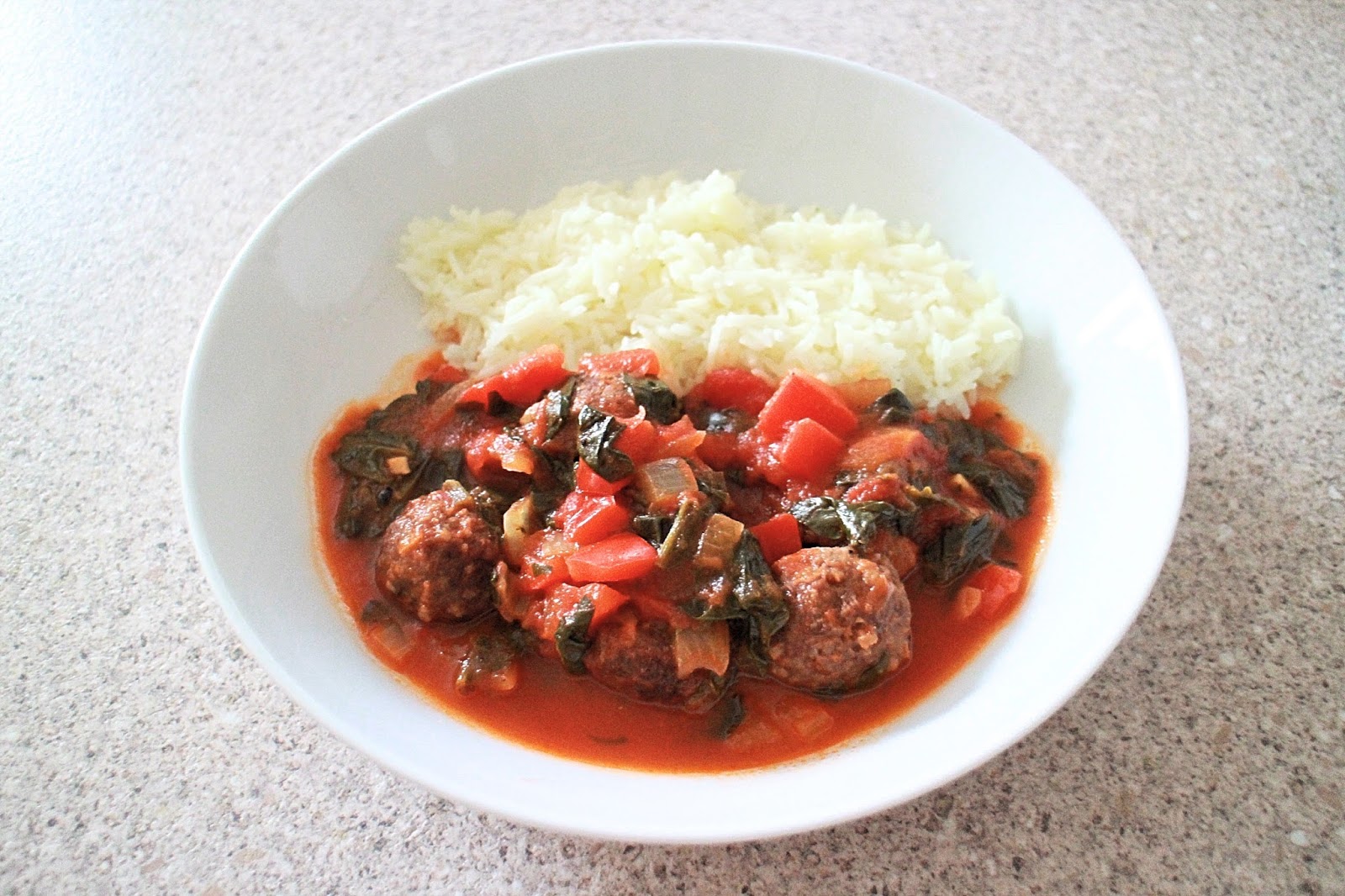 This dish is a tomato based dish with meatballs/köfte and the main ingredient, spinach. This meal is healthy and nutritious for the whole family to enjoy and is best served with some fluffy white rice like Basmati Rice, Greek Yoghurt and some fresh bread. Our favourite is a turkish bread called Cörek.