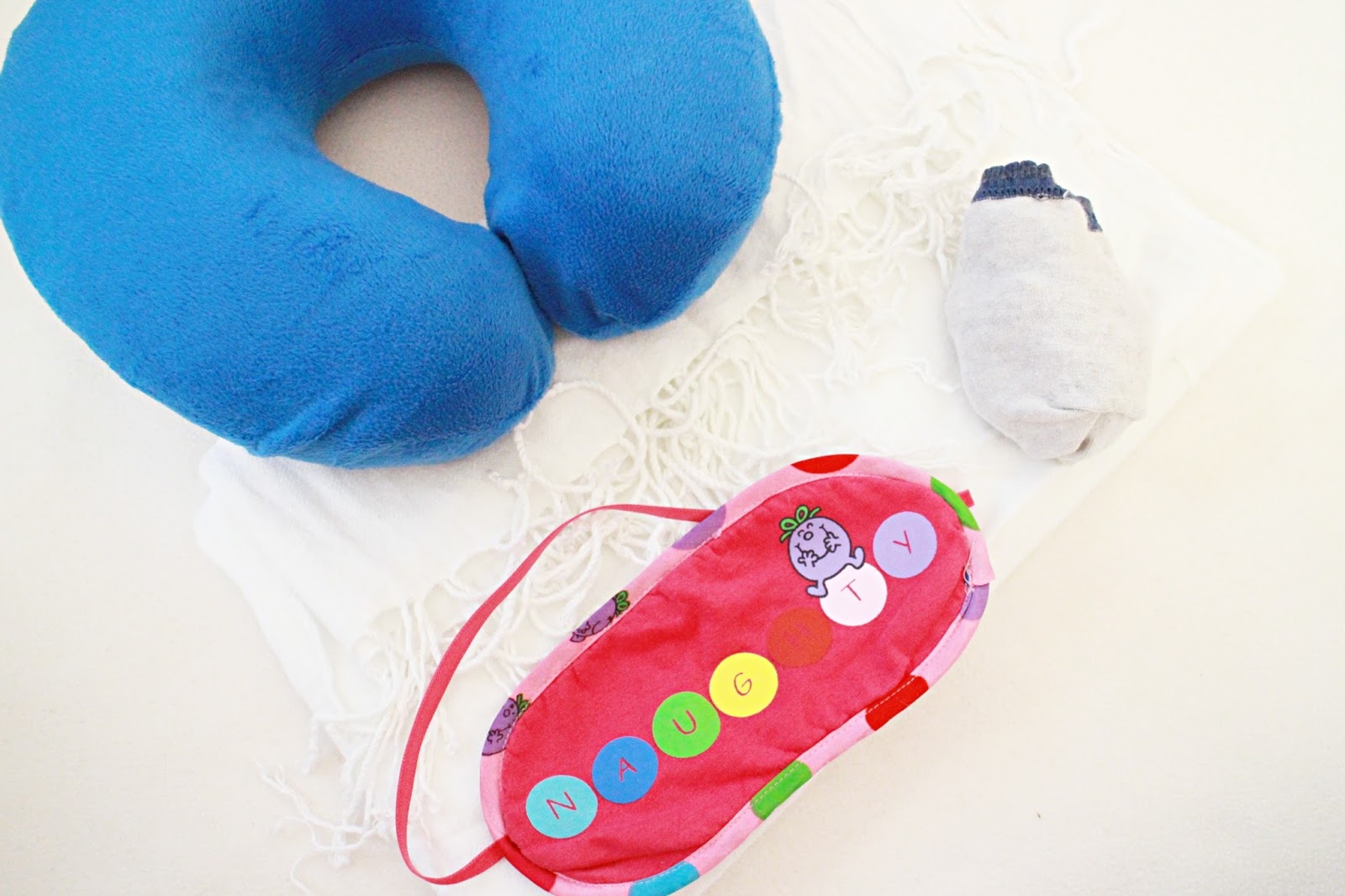 I always try to sleep/rest on a flight and I can never travel without a sleep eye mask, pashmina, a pair of socks and a *travel pillow.