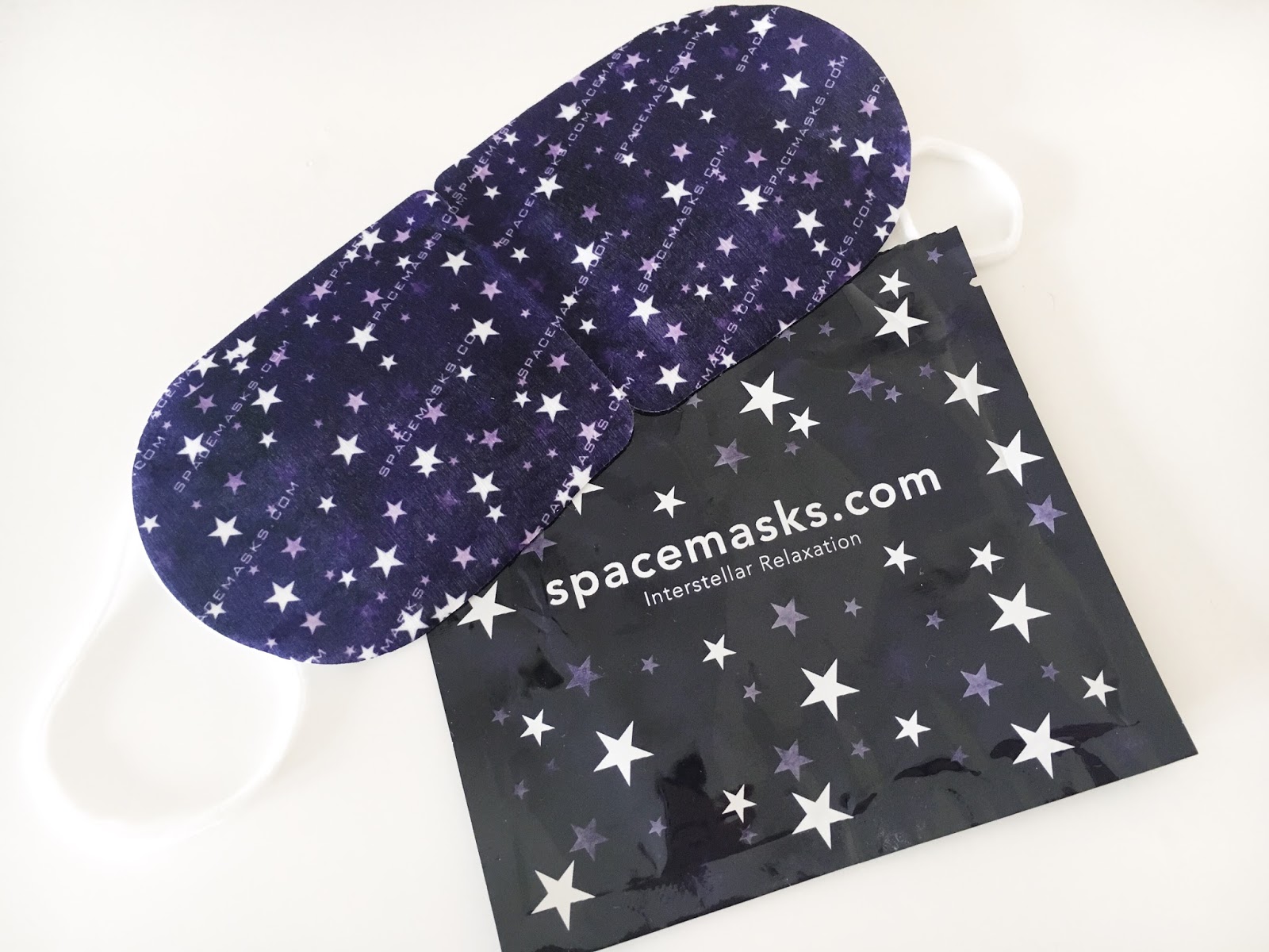 Spacemask is a self-heating eye mask, which is activated when removed from it’s little pouch. The mask unfolds and has a little loop on each side that goes behind your ears to secure the mask over your eyes.
