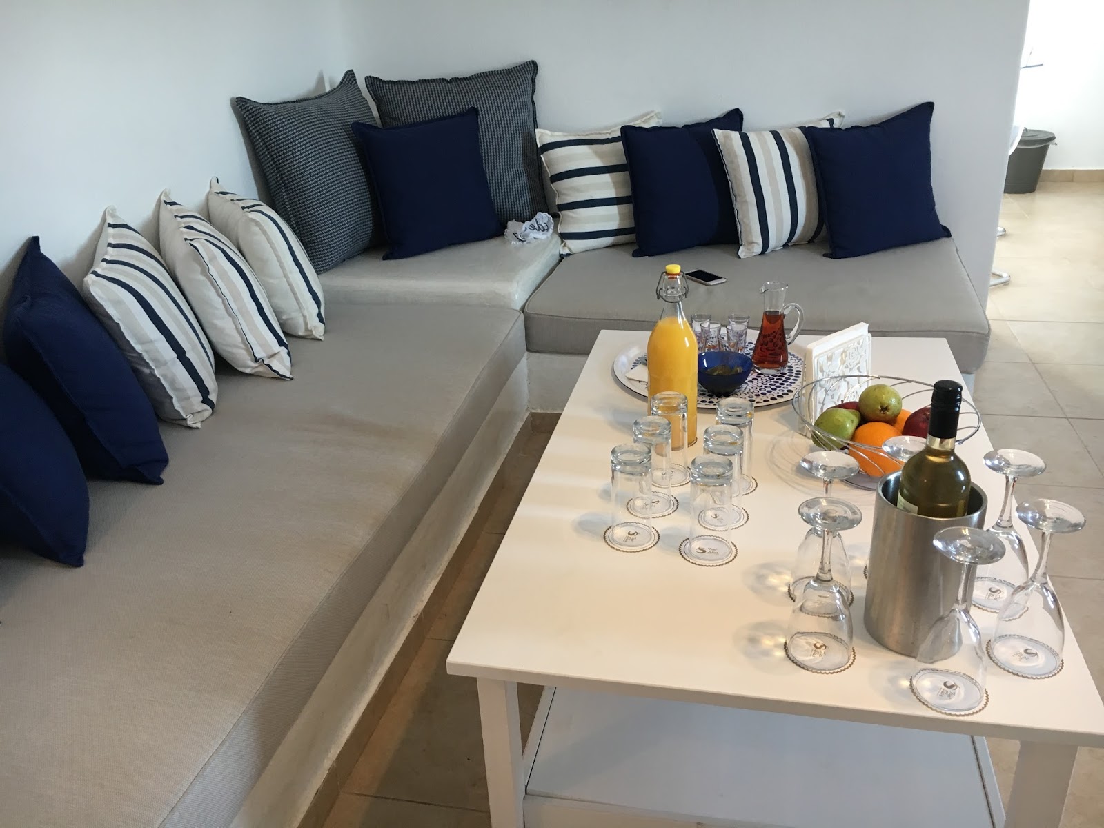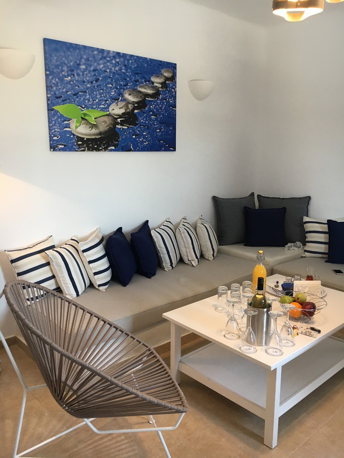 Our Villa was nothing like I had expected as I have never had a Villa holiday before. I was so impressed with how clean and modern it was. We had a fully fitted modern kitchen and a large sitting room with more spectacular views. On arrival there was a bottle of white wine, fresh orange juice and a local beverage to welcome us.