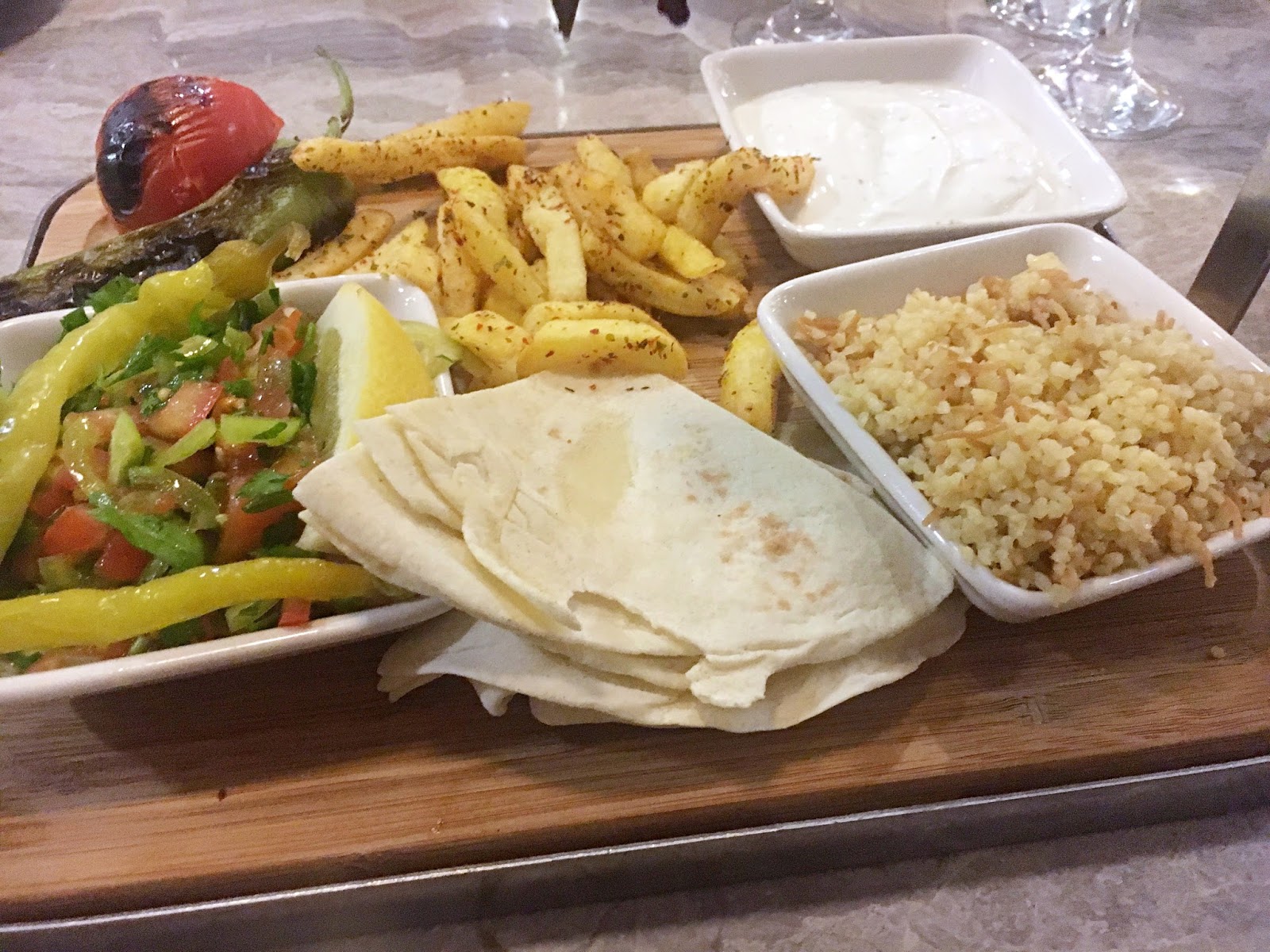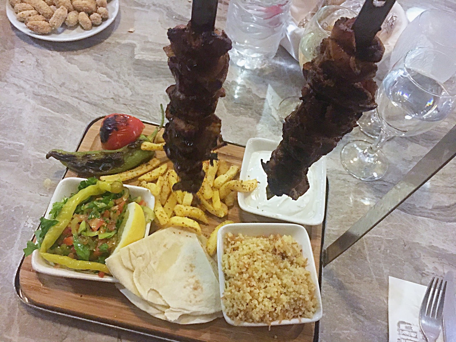 We had a cold meze to start with fresh bread with a lovely local white wine. I ordered Köfte for my main meal which came with Pilav, Chips and an Onion and Parsley Sumac salad. It was so delicious and perfect traditional Turkish Cypriot cuisine. Once we had finished our main meals the owner gave us a complimemtary bottle of wine to enjoy before we left, as well as some Karpuz (Watermelon) it was so lovely. We were there that long that we heard the next Call to Prayer, it really was so magical, relaxing and a wonderful evening.